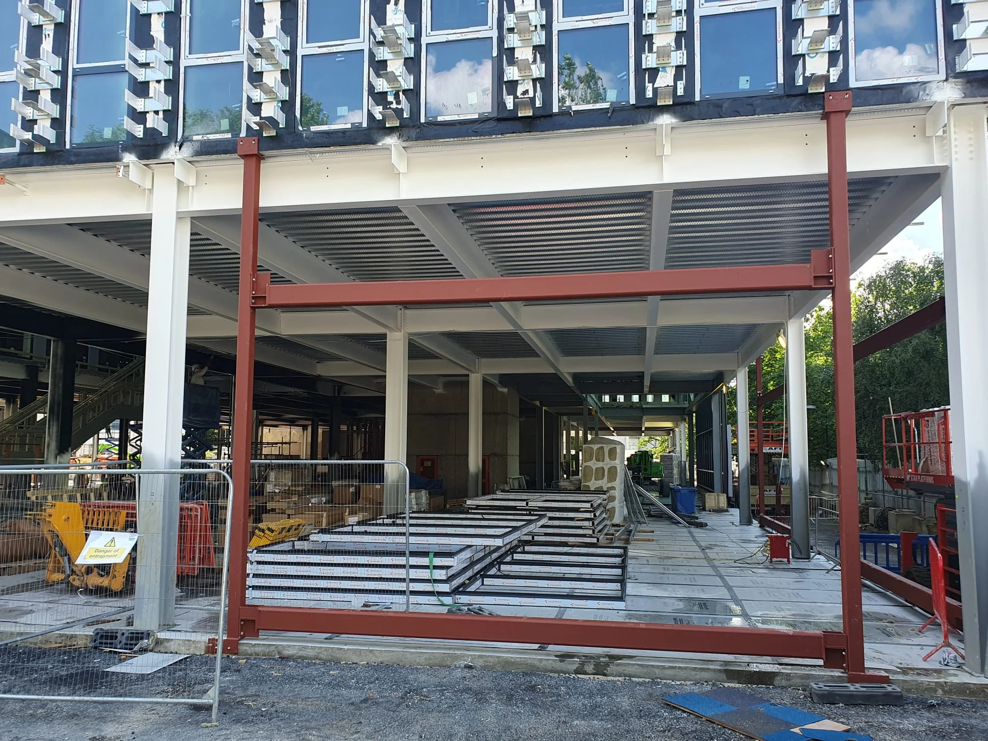 New door and window frame support steelwork installed within the ground floor of the new SPECS steelwork structure at the University of Hertfordshire. Further elements to be added as the job progresses.